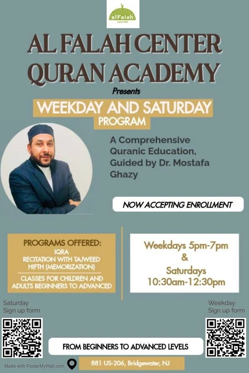 Al Falah Center was established in November 2010 by a group of community members to serve the needs of the growing Muslim community in Bridgewater and to play a positive role in the wider faith community…All praise and thanks belong to Allah (S.W.T.), with Whose blessing all good and righteous deeds happen, and all success is from Him. May prayers and peace be upon our dear Prophet Muhammad (ﷺ)anduponhis family and his companions. You plan and I plan but Allah is the Best Planner.